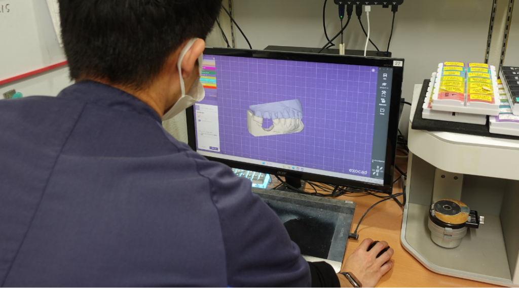 設計内容の確認や細かな調整には、歯科技工士の判断と経験が重要な役割を果たしています。