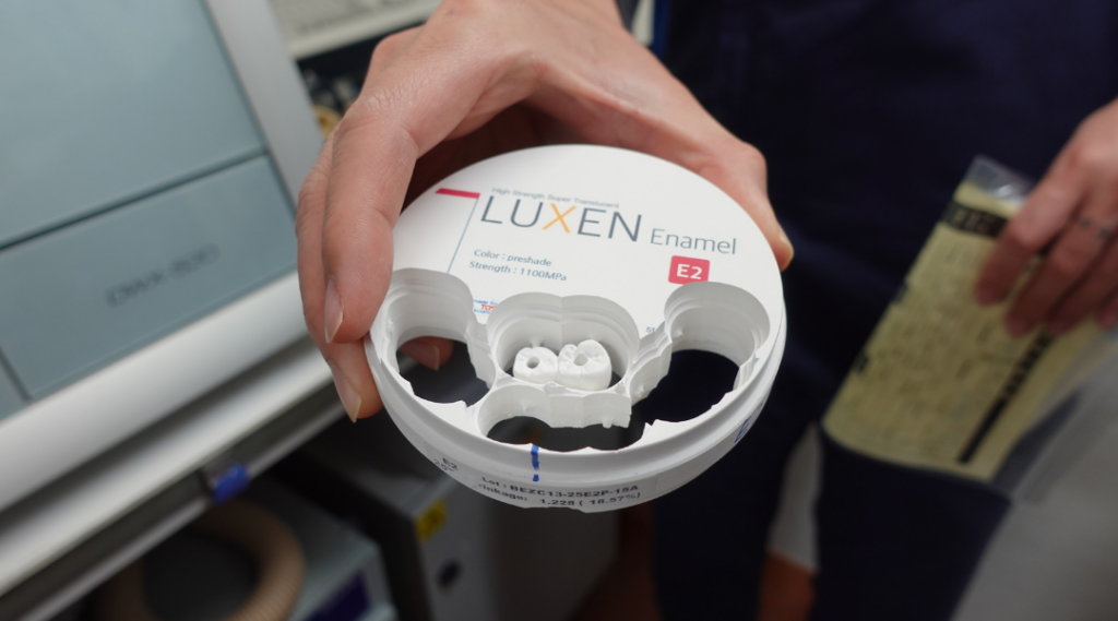 - コンピューター設計と機械加工を組み合わせて歯を作る