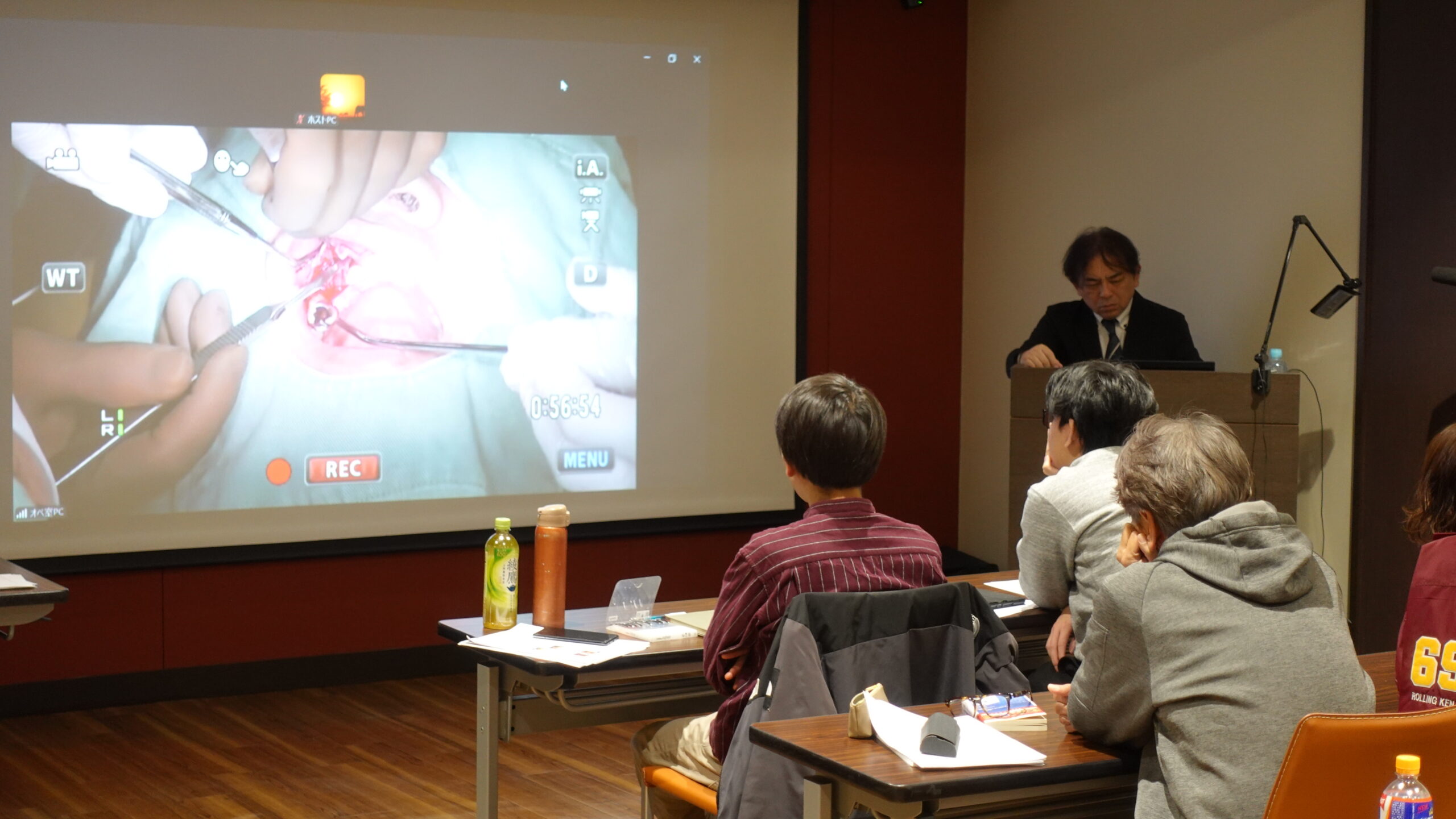 藤本院長による講義では、当日実施するライブオペの詳細や、直近の症例について解説が行われました。