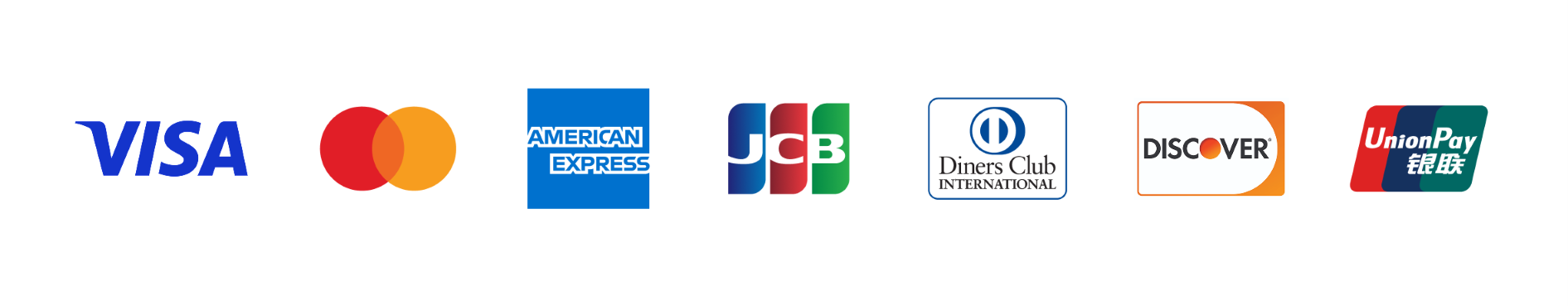 | クレジットカード | ・VISA(ビザ)・MasterCard(マスターカード) ・AMEX(アメリカンエキスプレス) ・JCB(ジェーシービー) ・Diners(ダイナーズ) ・Discover(ディスカバー) ・UnionPay(ユニオンペイ / 銀聯) |